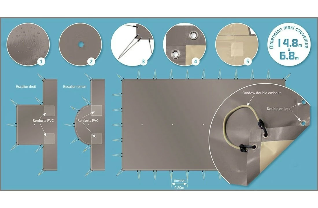 Voor zwembaden tot een afmeting van 14.80 x 6.80 meter (inclusief inlooptrap)