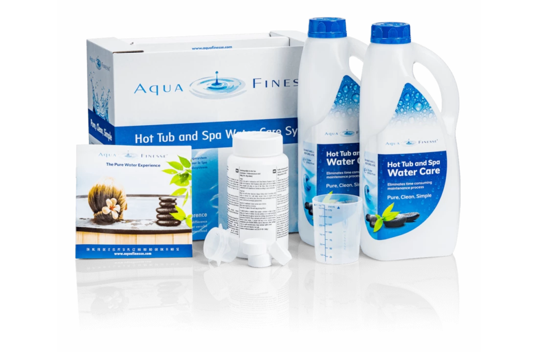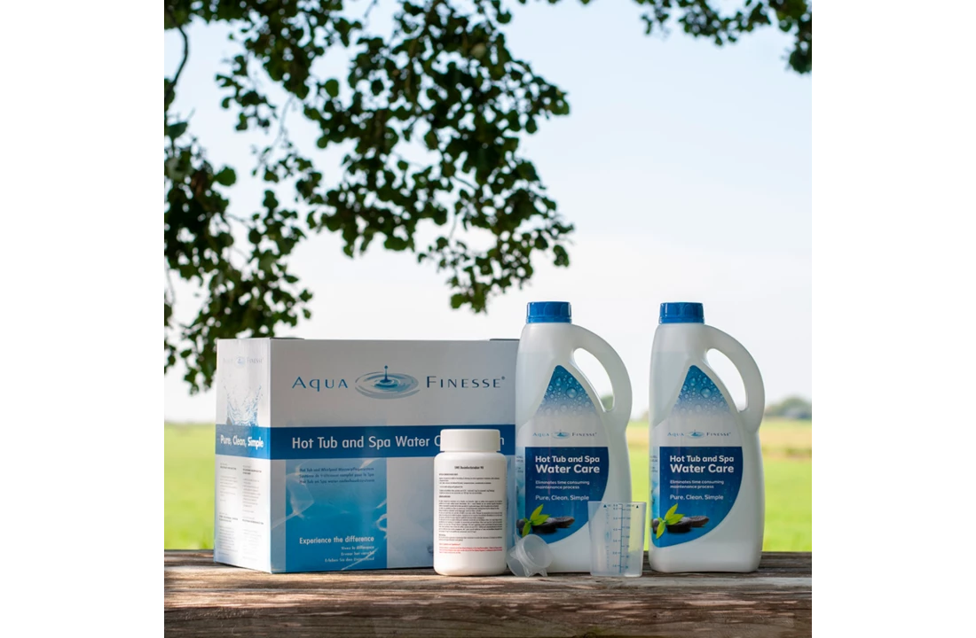 De AquaFinesse hot tub waterbehandelingset bevat alles wat u nodig heeft voor de waterbehandeling van uw spa. Met slechts één dosis per week zorgt AquaFinesse voor schoon en helder water! AquaFinesse maakt daarnaast het water in uw hot tub zachter door de kalk uit de apparatuur van de hot tub te verwijderen.