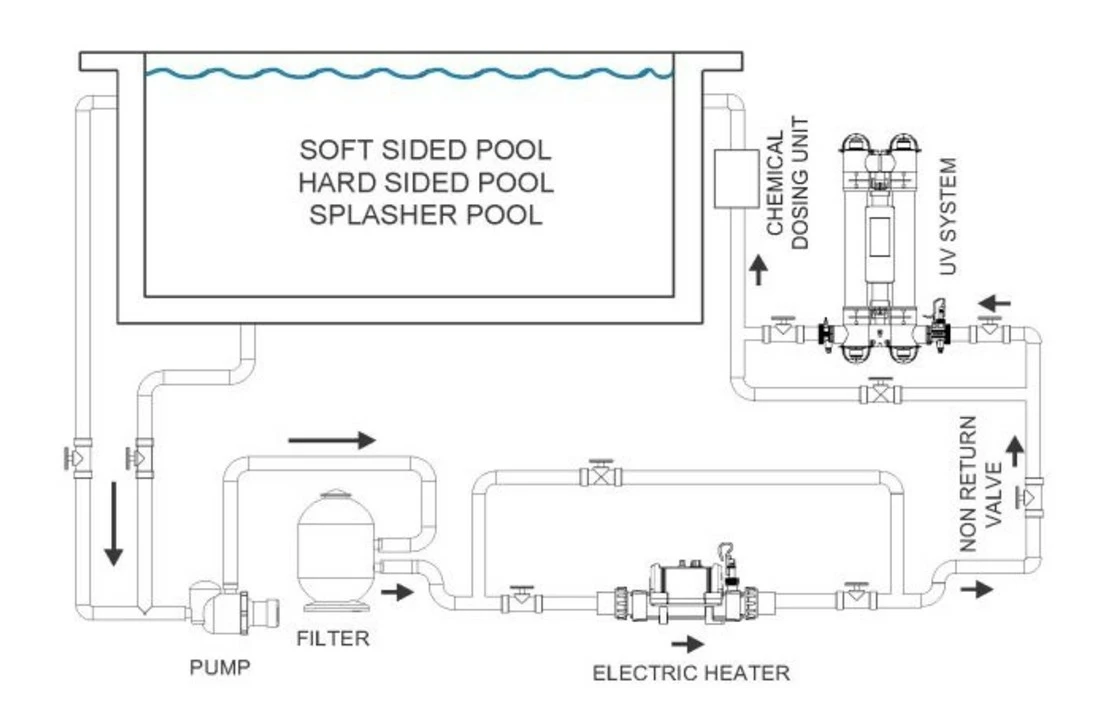 Ontworpen om te worden aangesloten op een standaard stopcontact van 13 A, voorzien van een aardlekschakelaar. Klaar voor integratie met het circulatiesysteem van het zwembad.