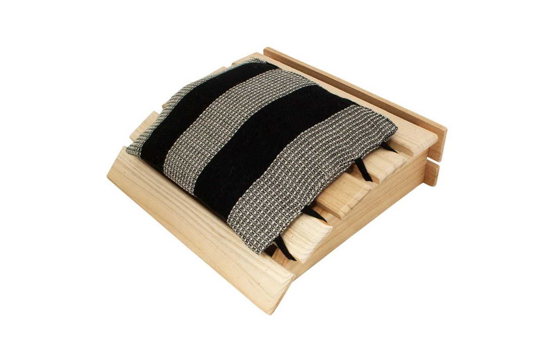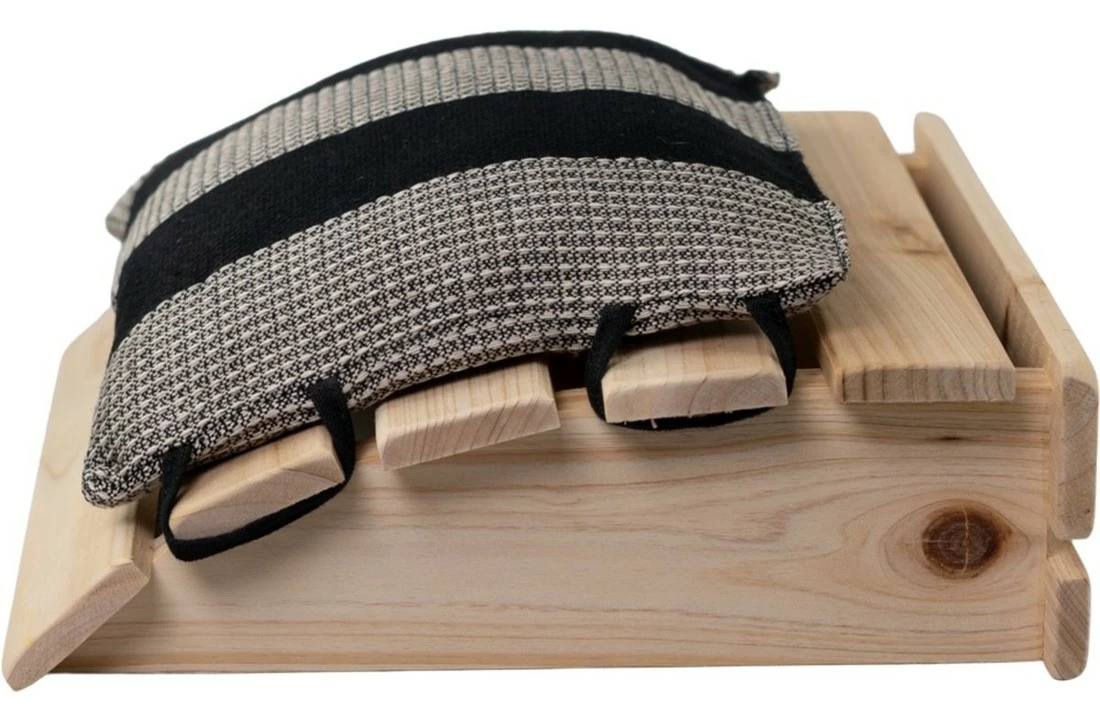 Plaats de houten hoofdsteun om uw hoofd of nek te ondersteunen en te ontspannen.