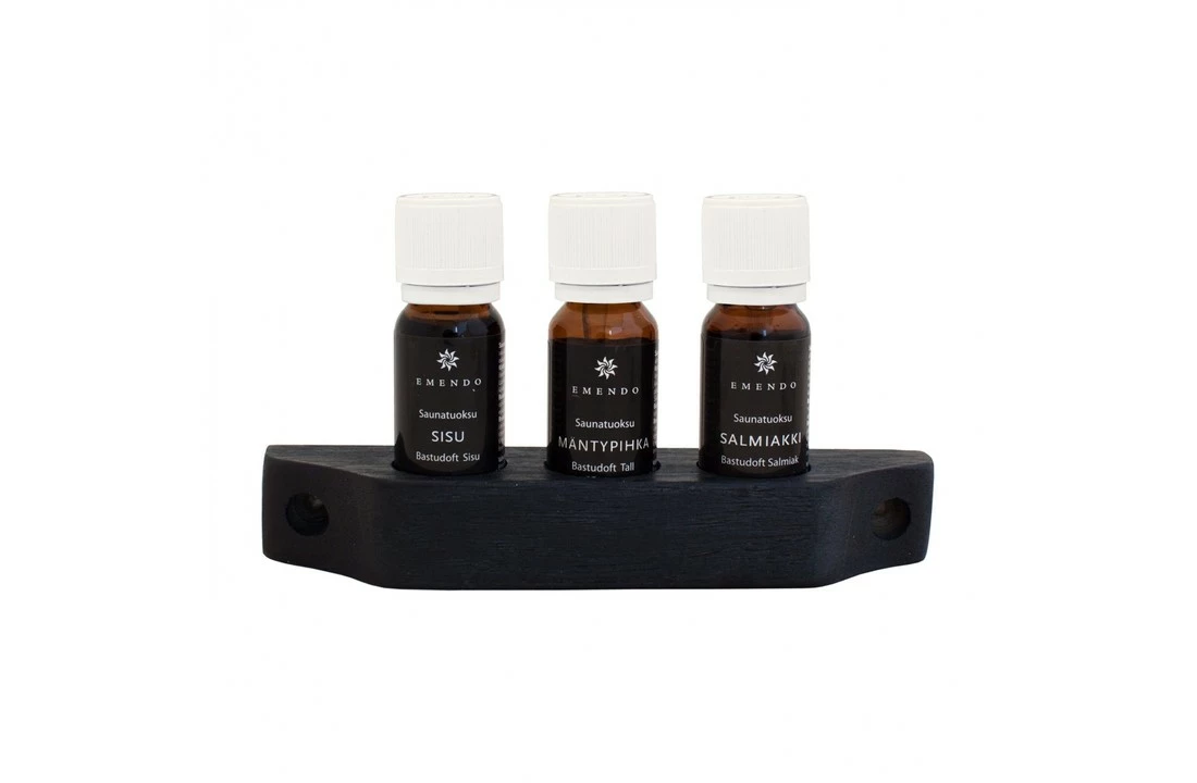 Emendo set Sauna geuren 3 x 10 ml inclusief houten rekje