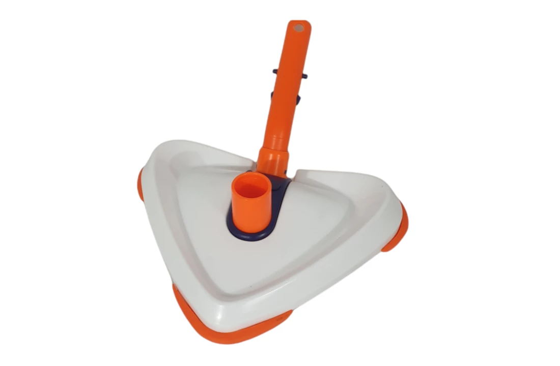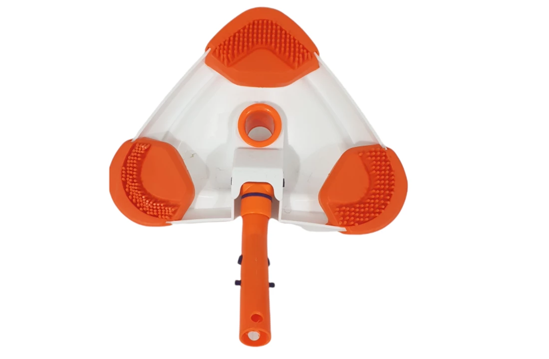 Driehoekige bodemzuiger met siliconen stukken aan de onderkant, hierdoor is het vuil makkelijker los de krijgen van de bodem.
