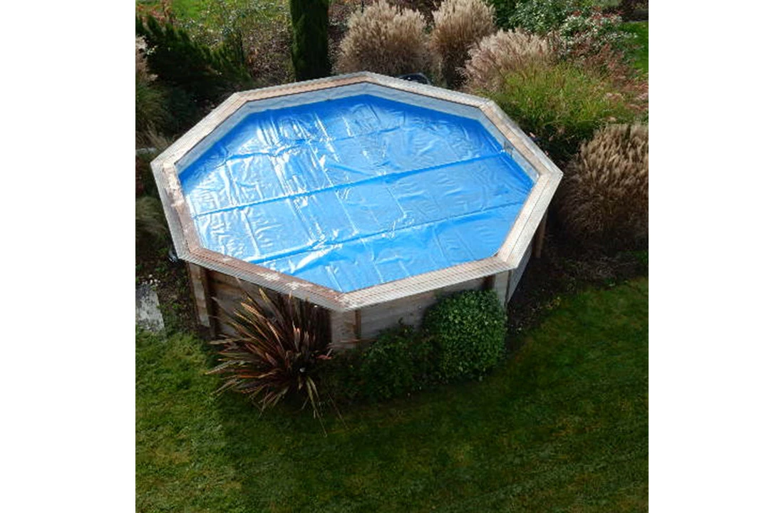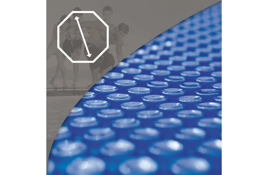 Zwembad afdekking voor octagon zwembaden met verschillende afmetingen. Geschikt voor in de zomer. Voorkomt vuil in het zwembad waardoor de waterkwaliteit beter in balans blijft. Daarnaast zorgt de afdekking ervoor dat de temperatuur van het zwembad minder snel daalt. Wanneer de zon op de afdekking schijnt, geeft de afdekking warmte af aan het water. De randen zijn afgeboord waardoor het zeil beschermt is tegen spanning en wrijving. Het zeil is voorzien van oogjes voor bevestiging.Â