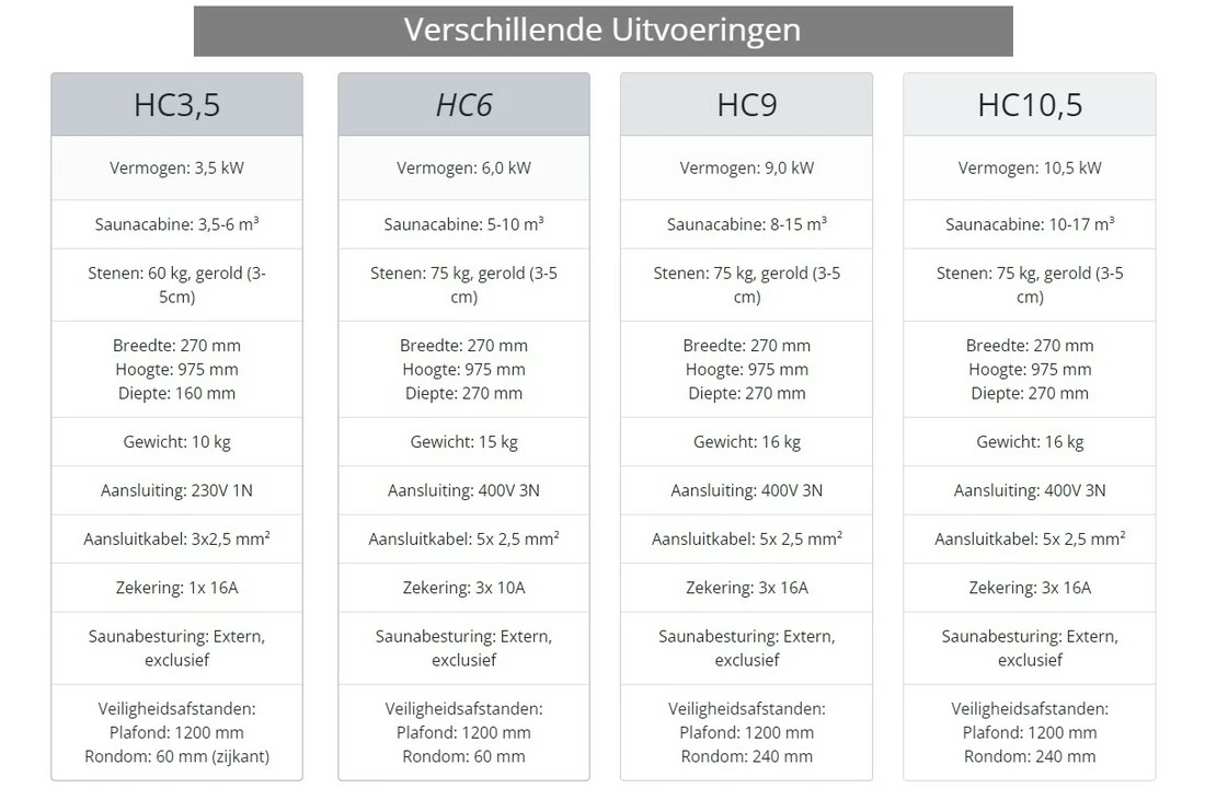 Cliff 6 kW, 9 kW, 10.5 kW: 150 kg (3-5cm)