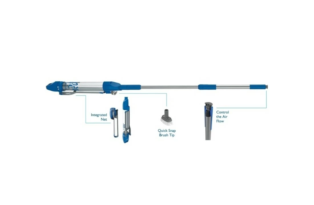 - Wordt compleet geleverd met verwisselbare onderdelen, speciaal ontworpen om al het vuil van vloeren, trappen en het wateroppervlak te verwijderen