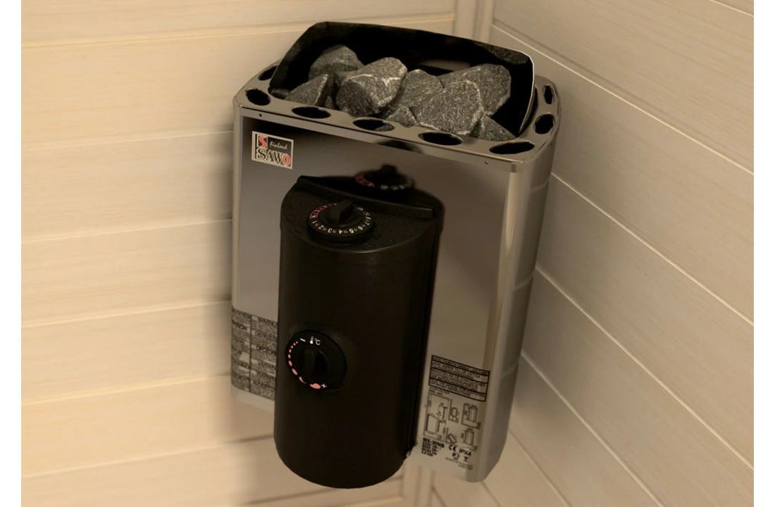 Mini X is een ideale kachel voor sauna’s met zeer beperkte ruimte. Hij wordt in de hoek van de saunaruimte geplaatst, zodat er maximale ruimte is voor saunagebruik. Mini X heeft 11 kg steenruimte. Hij kan zowel met ingebouwde als aparte bedieningseenheden worden bediend.