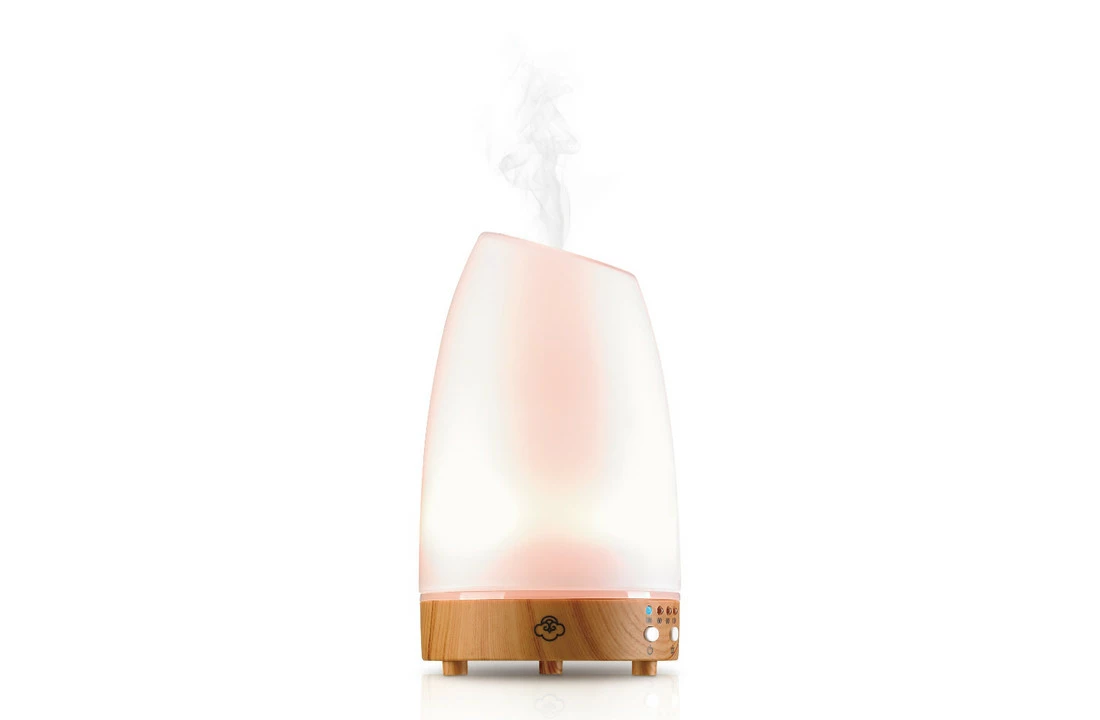 De Astro Grey 90 met houten basis, zal elke kamer een elegant tintje geven. De Astro-diffuser werkt tot 4 uur continu of tot 8 uur met tussenpozen en heeft een timer voor 60, 90 of 120 minuten als ook 7 LED kleuren. Voeg water en een paar druppels essentiële olie naar keuze toe, zet hem aan en laat je opladen door de geurende mist. Wanneer het water onder een bepaald niveau zal de diffuser automatisch stoppen.